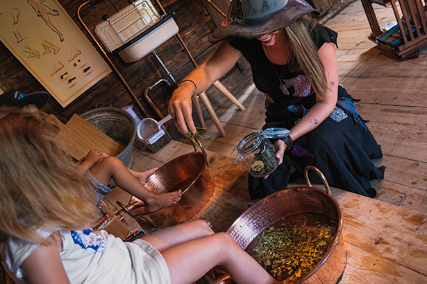 Die Hexe führt Dich in ihr Fuß-Bad: Kräuter, Öle, Wasserschalen... „Vergiss nie, wie Dich Deine Füße tragen!
