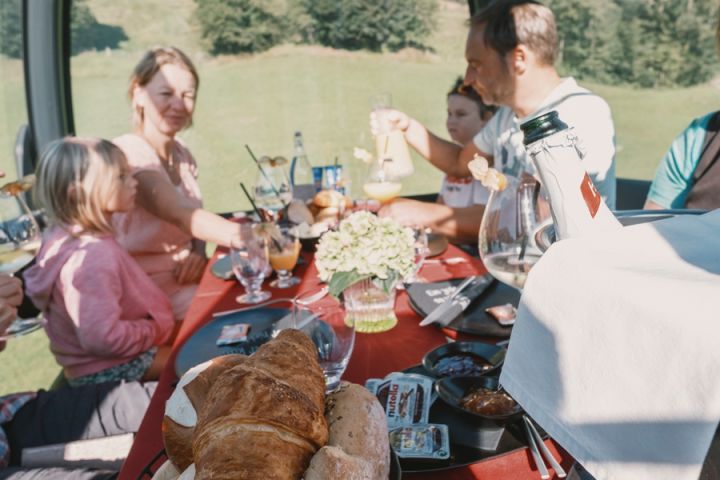 Eine Gondel nur für Euch. Erlebt genussvolle Momente in unserer Hexenwassergondel. Unter Freunden oder im Kreise der Familie könnt ihr Euch beim grandiosen Blick auf den Wilden Kaiser zurücklehnen und gemütlich frühstücken. Eine Auswahl an süßen und pikanten Leckerreien ist ebenso im Preis enthalten wie Kaffee und Säfte. Ihr habt etwas zu feiern? Auf Wunsch stellen wir Euch auch gerne zusätzlich eine Flasche Sekt bereit. Nehmt Euch insgesamt ca. zwei Stunden Zeit und schwebt gemütlich über Söll.