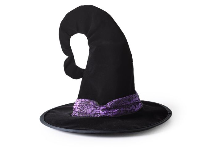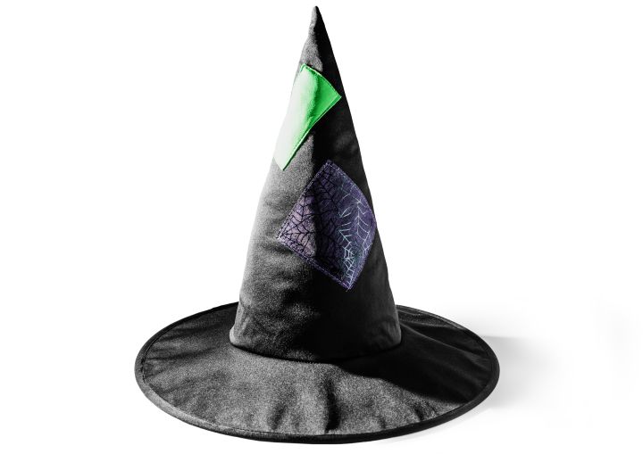 Schwarzer Hexenhut mit grünen Flicken, ca. 30cm hoch