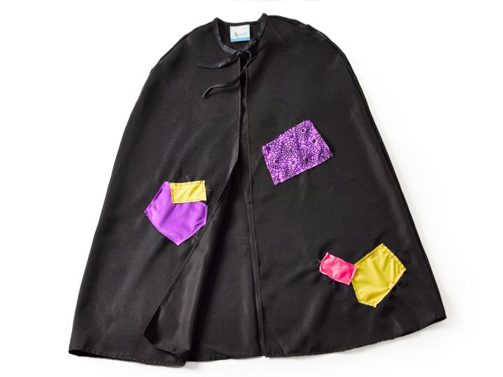 Eine schnittige Variante der Hexenwasser Hexe ziert dieser Umhang mit bunten Flicken.
